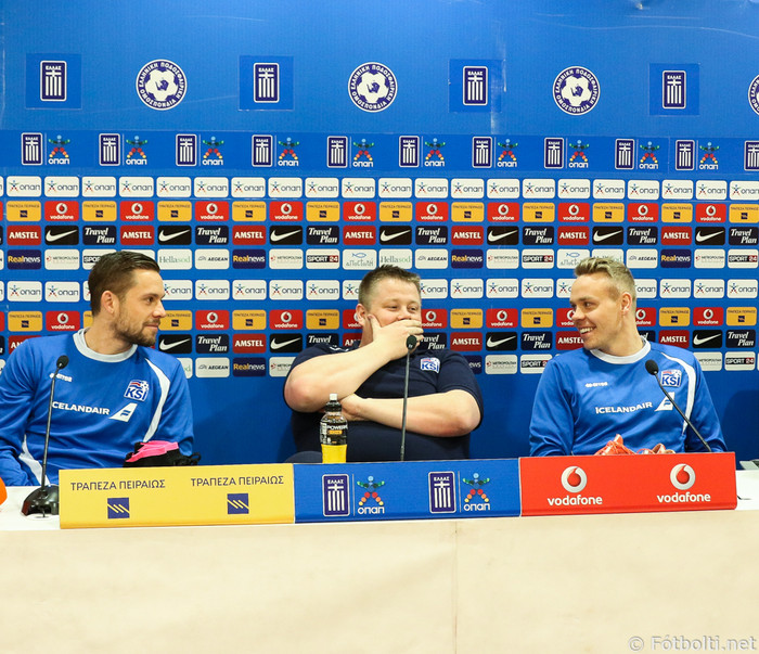 Gylfi Þór Sigurðsson og Kolbeinn Sigþórsson áttu að sitja fyrir svörum ásamt Heimi Hallgrímssyni landsliðsþjálfara.