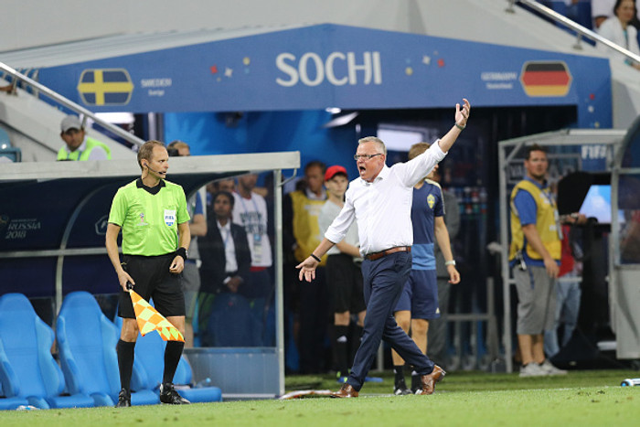 Janne Andersson, landsliðsþjálfari Svía, lenti í rifrildi við Bojan Djordjic, sérfræðing Viaplay, í beinni sjónvarpsútsendingu eftir 5-0 sigur Svía gegn Aserbaídsjan í gær.