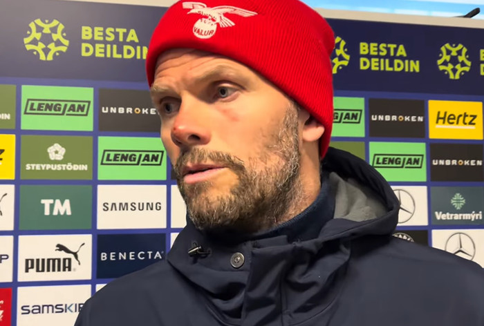 „Ég fer ekki aftur inn í eldhúsið,“ sagði Hermann Hreiðarsson, þjálfari Vals, hlæjandi í viðtali við Sýn þegar hann var spurður út í brunasár á andliti sínu.