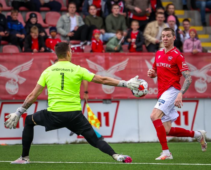 Það vakti hörð viðbrögð á samfélagsmiðlinum X þegar Besta deildin birti myndband af atvikinu, sem hægt er að sjá hér.