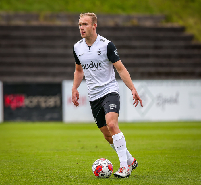 Heimamenn voru hársbreidd frá marki á 23. mínútu er Benedikt Warén kom boltanum fyrir markið. Sergine Fall var klár í að pota honum í netið en þá kom Ólafur Guðmundsson og bjargaði á síðustu stundu.