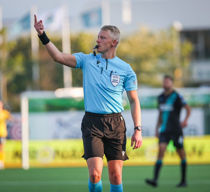 Peiman Simani frá Finnlandi mun dæma á Greifavellinum á fimmtudag þegar KA fær Silkeborg frá Danmörku í heimsókn í forkeppni Sambandsdeildarinnar. Fyrri viðureign liðanna endað með 1-1 jafntefli.