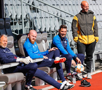 „Ég hef talað við Aron. Hann hefur verið að segja mér frá því sem hann hefur verið að gera og einnig hefur hann verið að vinna með sjúkraþjálfurunum okkar," sagði Hareide á fréttamannafundi í dag.