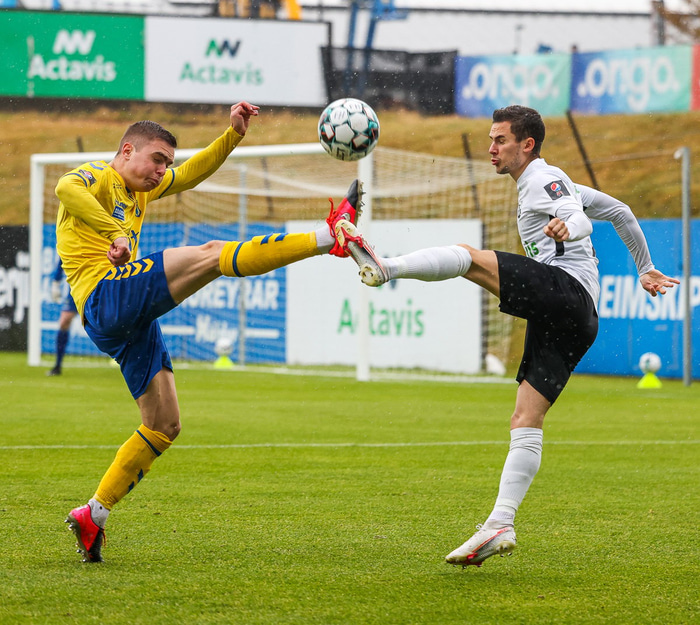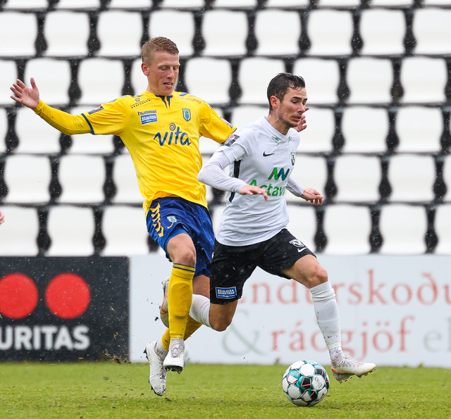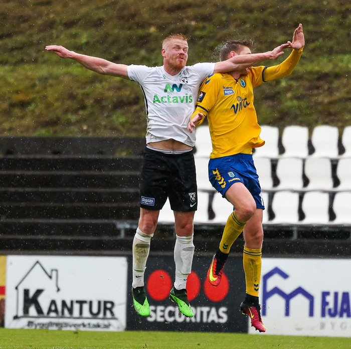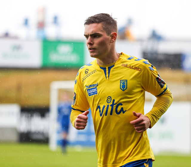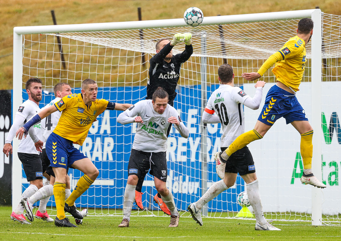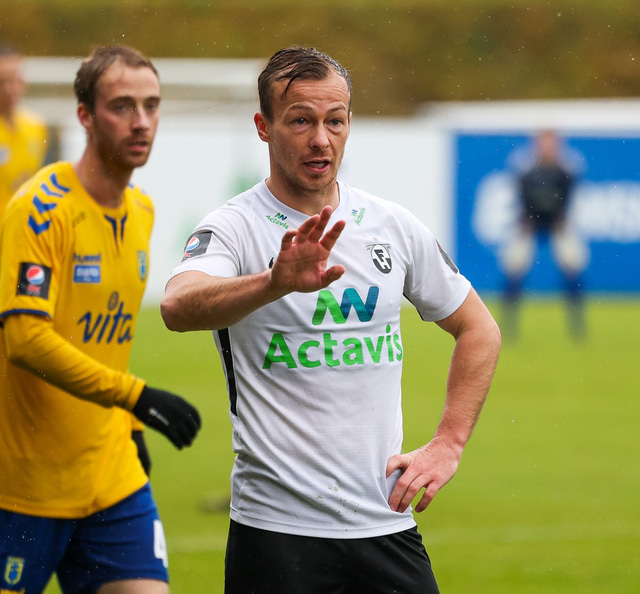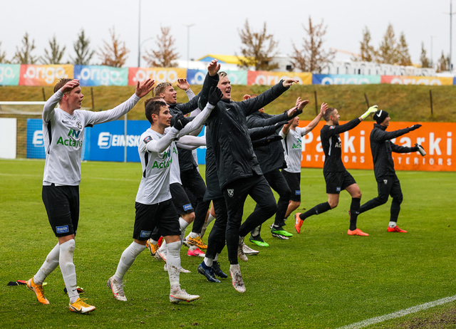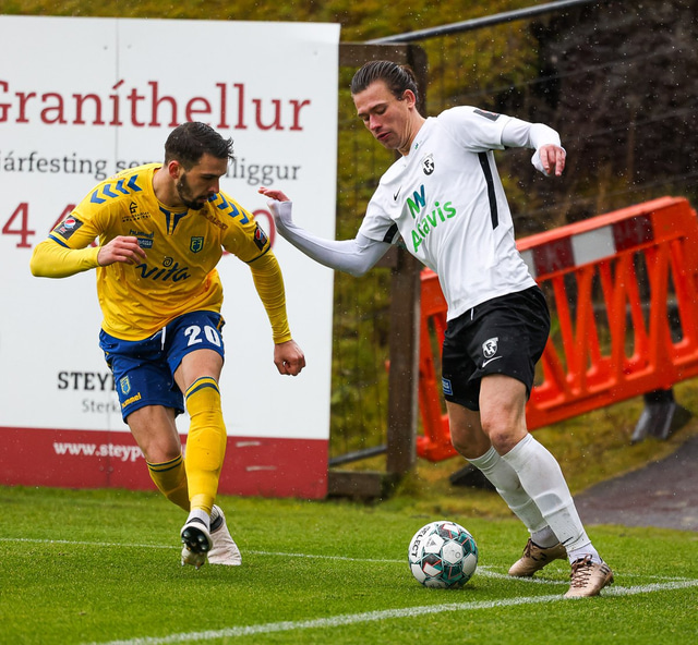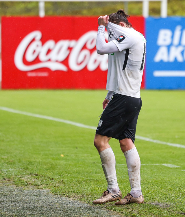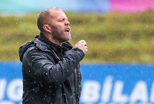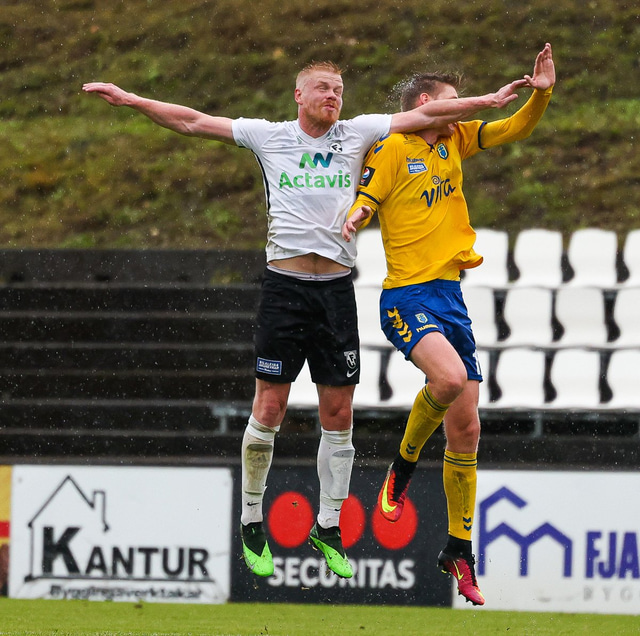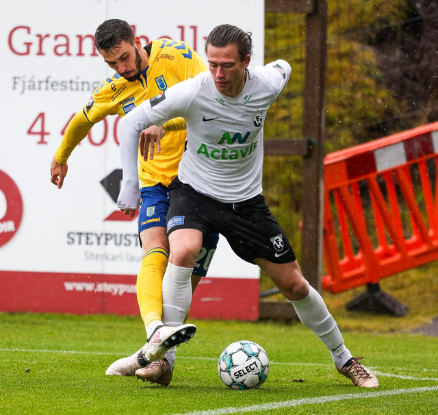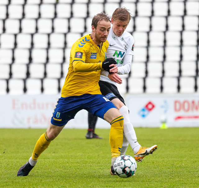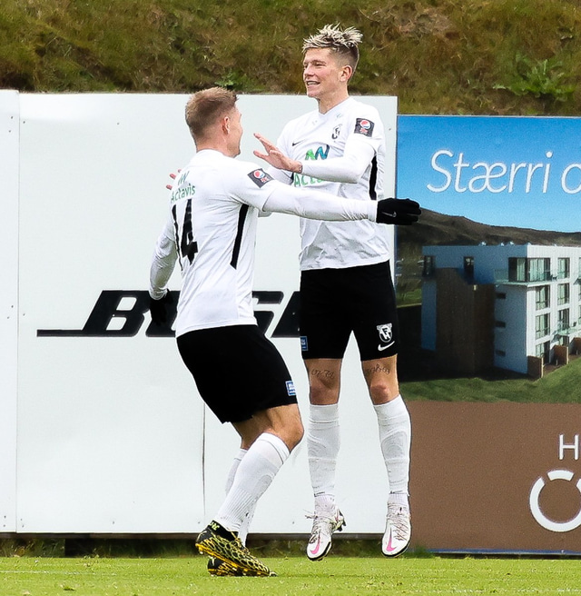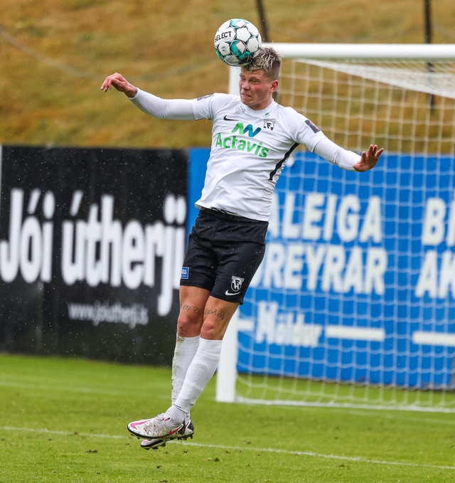 Morten Beck Andersen skoraði eina mark leiksins þegar FH vann Fjölni í Kaplakrikanum í gær. Hér að neðan er myndaveisla.