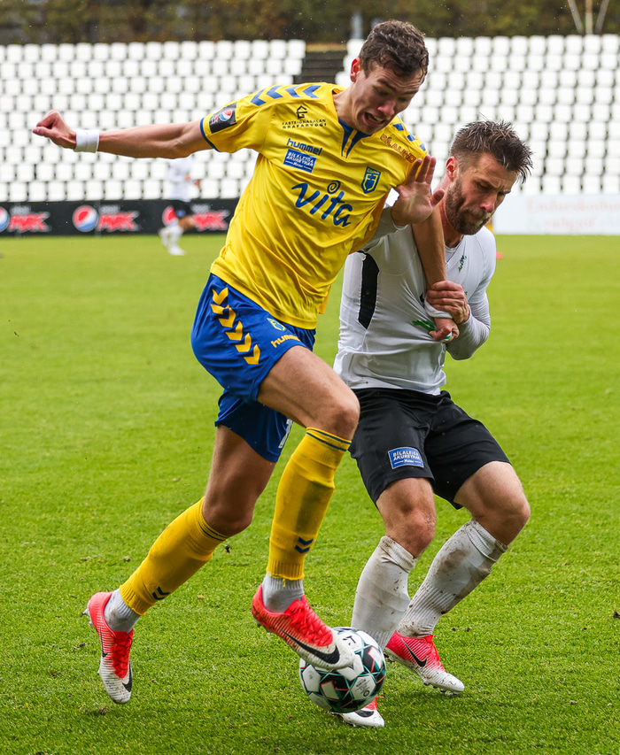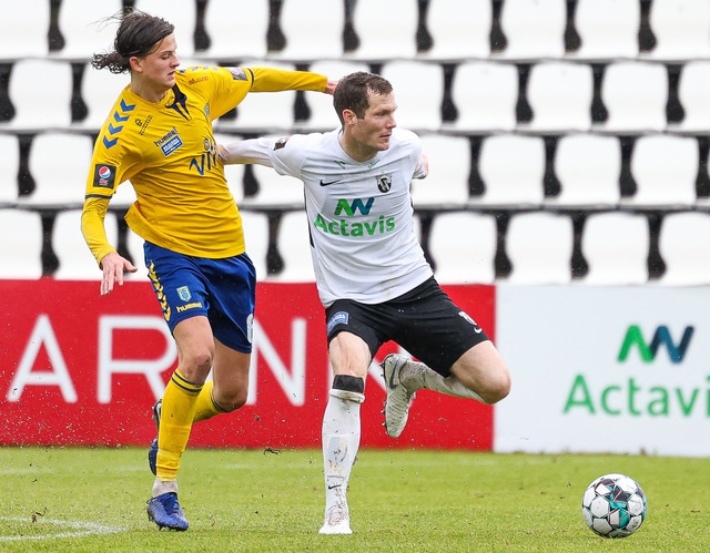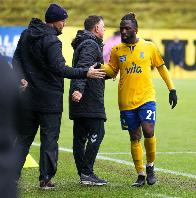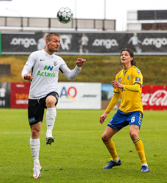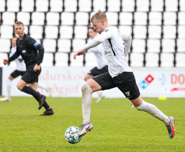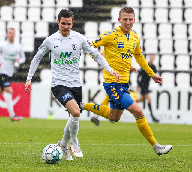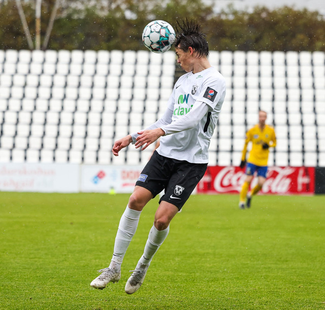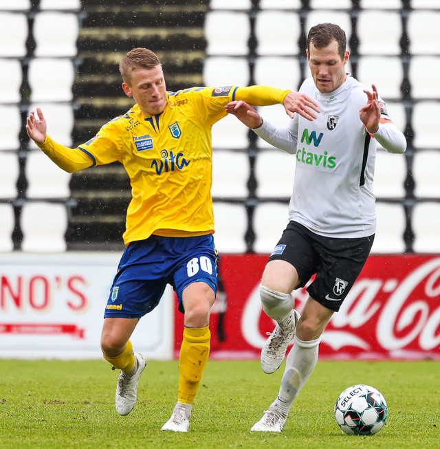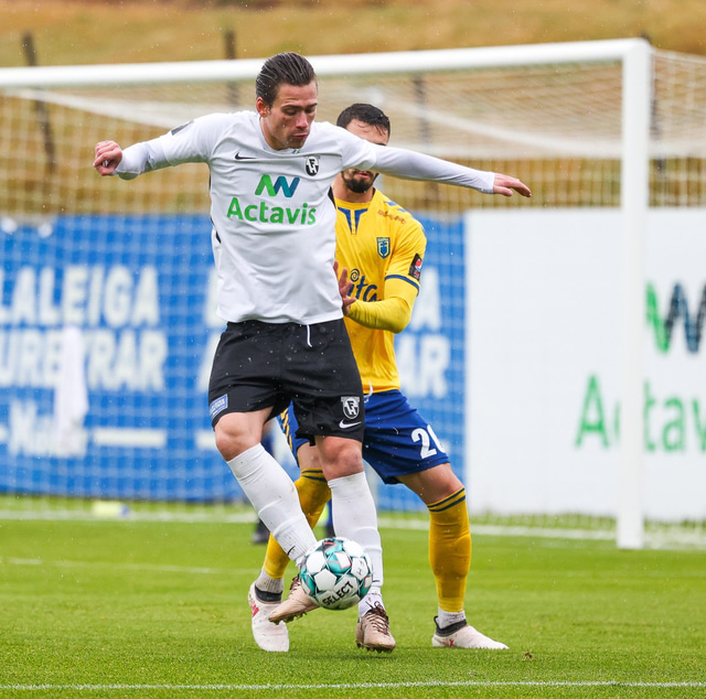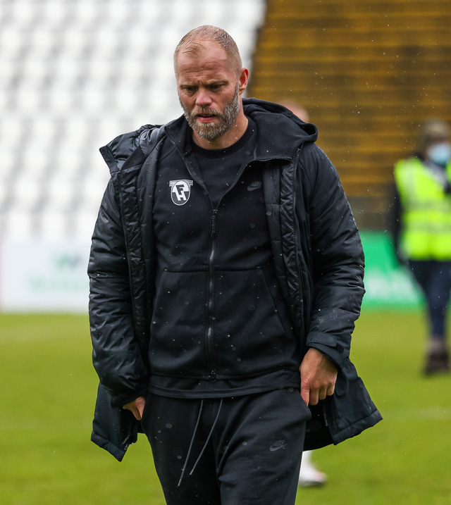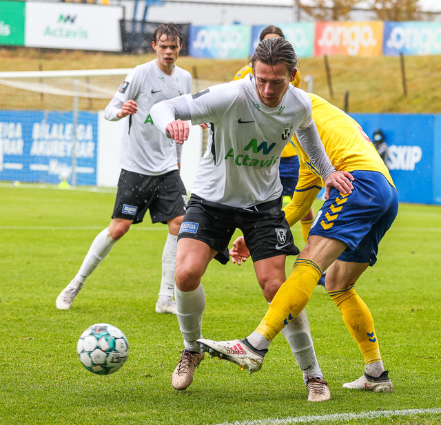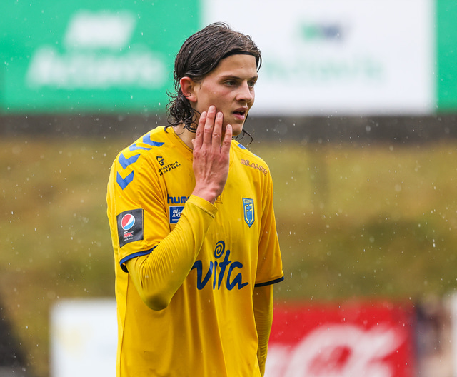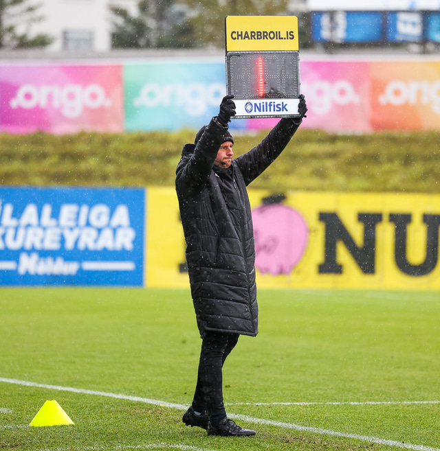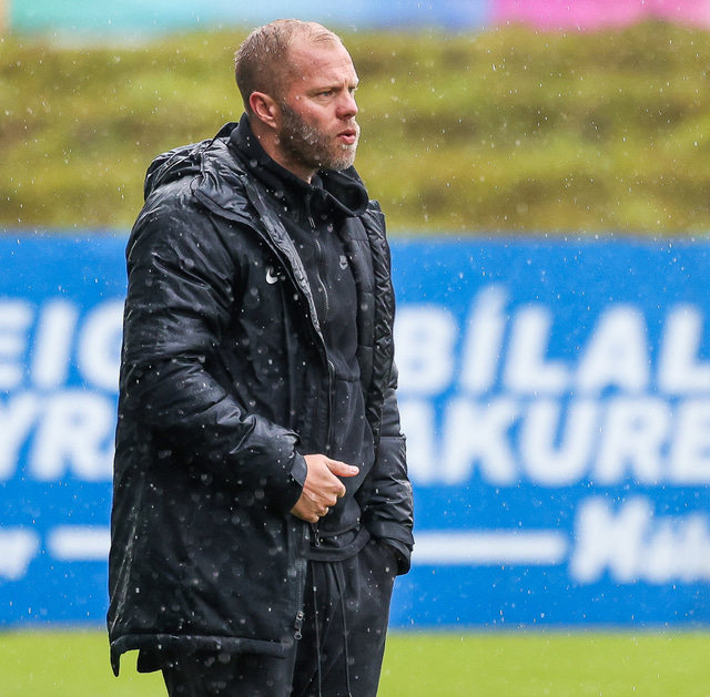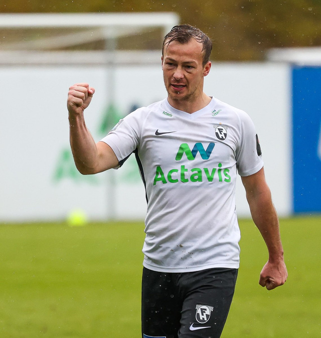 Morten Beck Andersen skoraði eina mark leiksins þegar FH vann Fjölni í Kaplakrikanum í gær. Hér að neðan er myndaveisla.