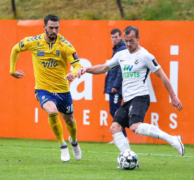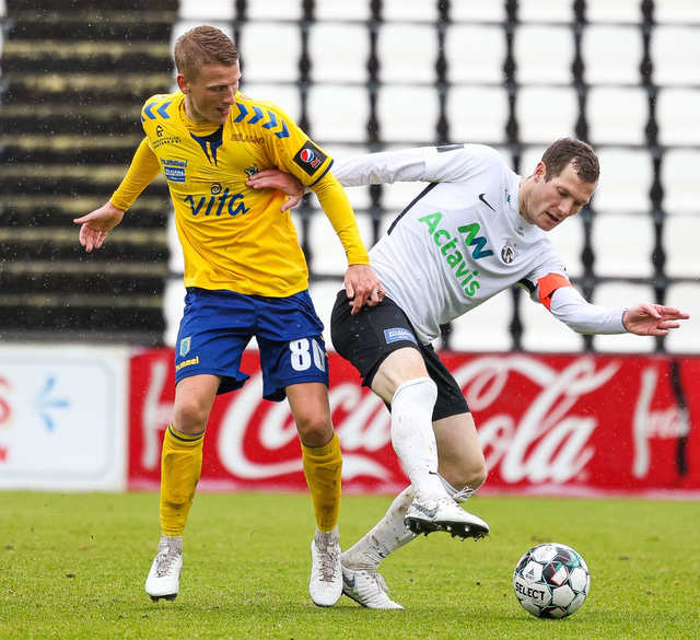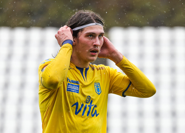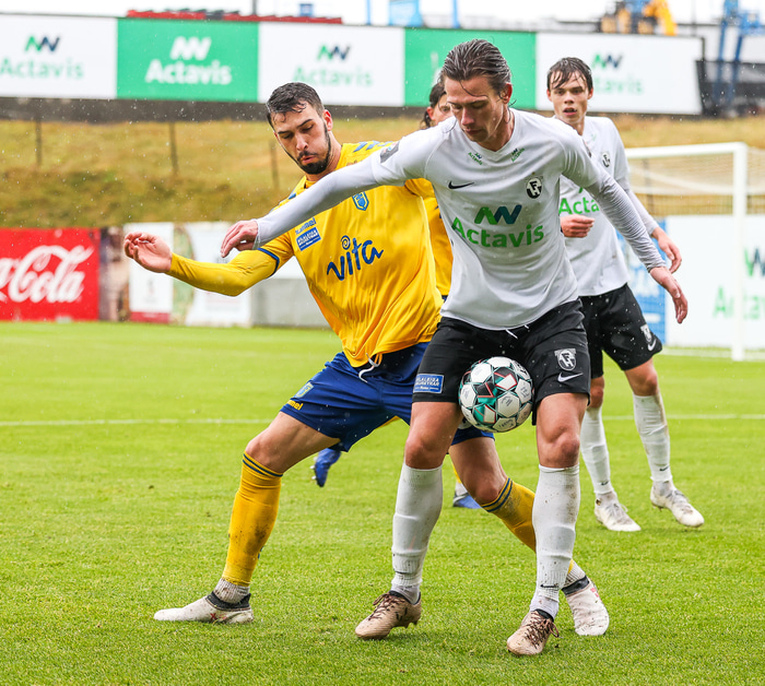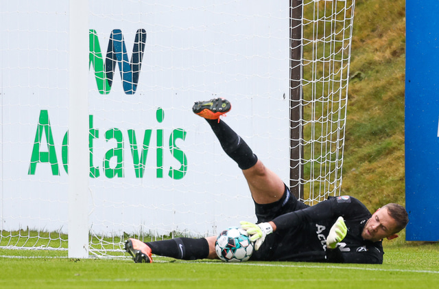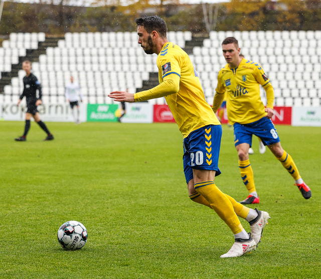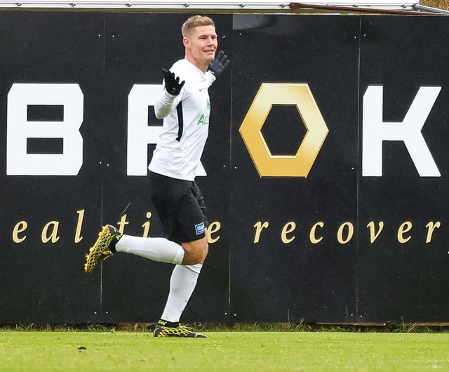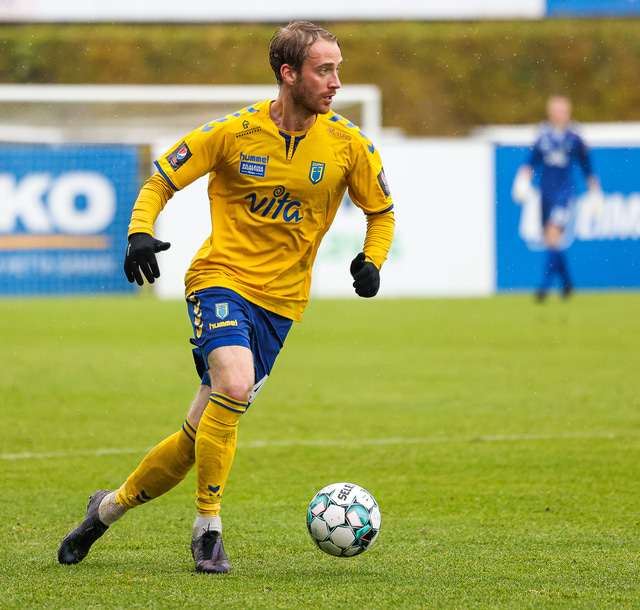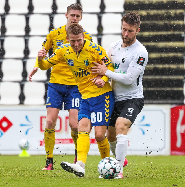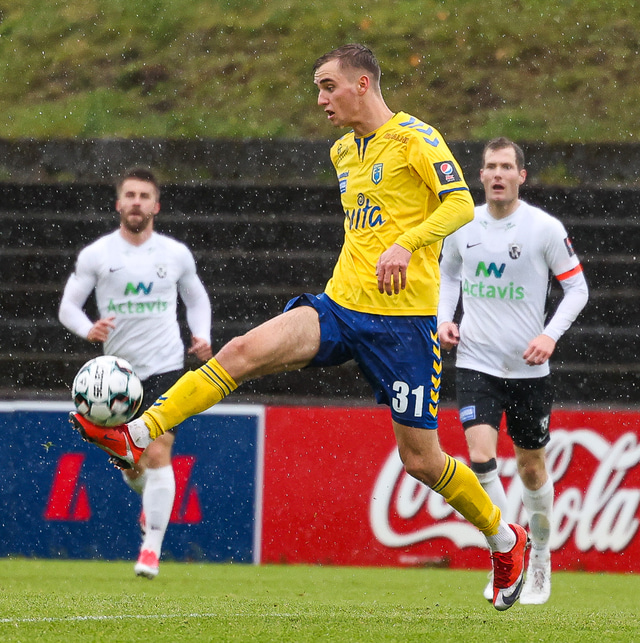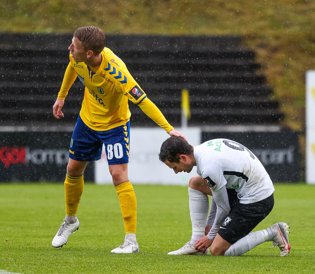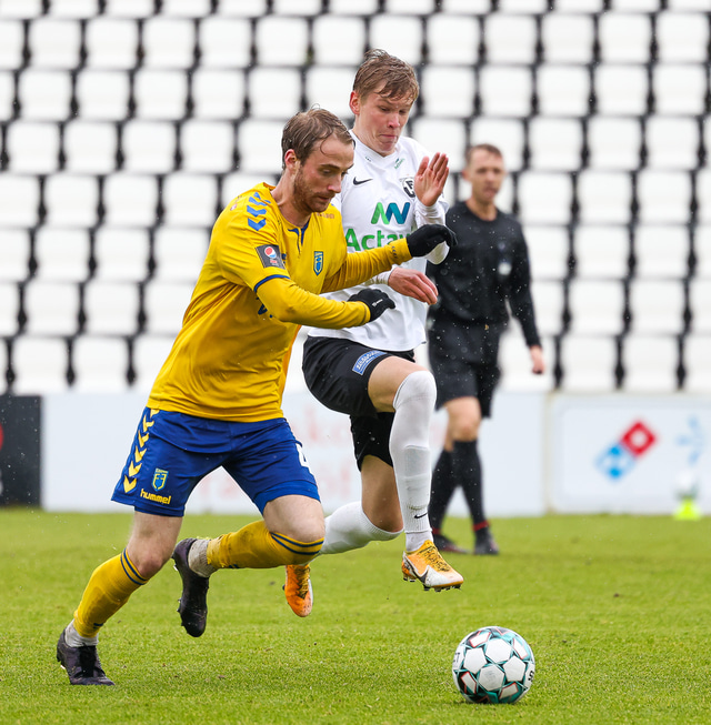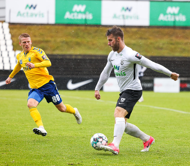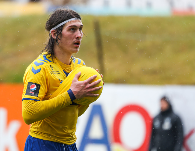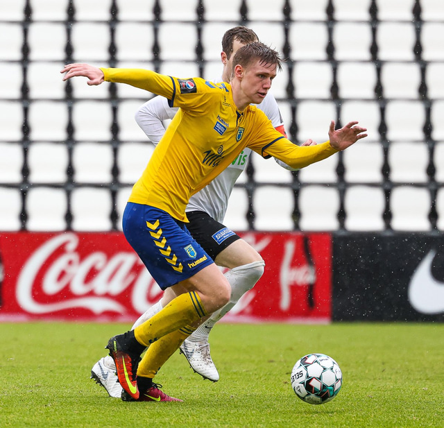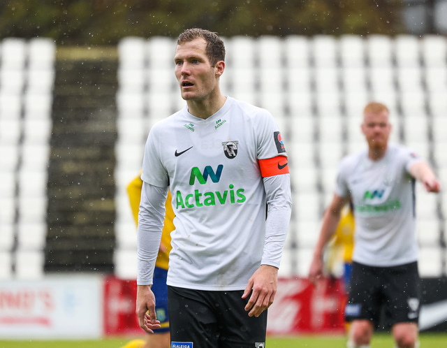 Morten Beck Andersen skoraði eina mark leiksins þegar FH vann Fjölni í Kaplakrikanum í gær. Hér að neðan er myndaveisla.