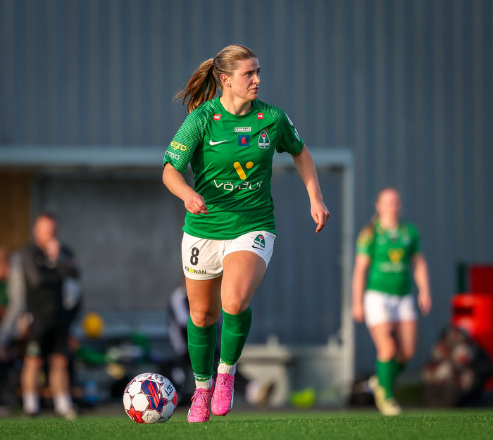 „Þær keyra svolítið hratt á lið og það er ringulreið í gangi á meðan þannig við ákváðum að droppa aðeins og stjórna þá aðeins leiknum. Við breyttum líka aðeins um leikkerfi. 4-3-3 með tvær djúpar þá var ekki að opnast svona mikið svæði á miðjunni sem þær voru að keyra inn í.“