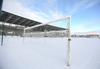 Leikurinn átti að hefjast klukkan 18:00 á Laugardalsvelli í kvöld en vegna mikillar snjókomu var metið sem svo að völlurinn væri óleikhæfur.