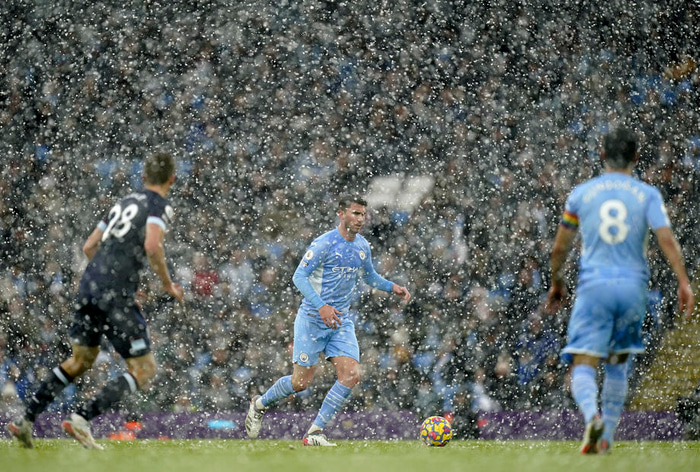 Mikil snjókoma á Bretlandseyjum hefur sett svip sinn á leikina í ensku úrvalsdeildinni.