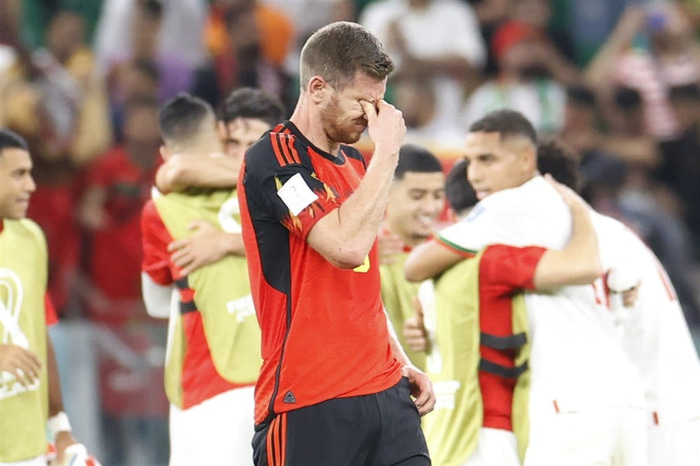 Jan Vertonghen og félagar í belgíska landsliðinu voru svekktir eftir tap gegn Marokkó í 2. umferð riðlakeppni heimsmeistaramótsins.
