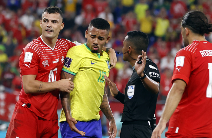 Topplið Arsenal í ensku úrvalsdeildinni átti þrjá fulltrúa í leiknum, Granit Xhaka hjá Sviss, Gabriel Jesus og Gabriel Martinelli hjá Brasilíu.