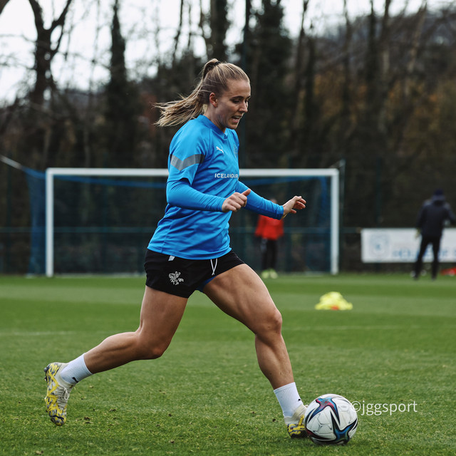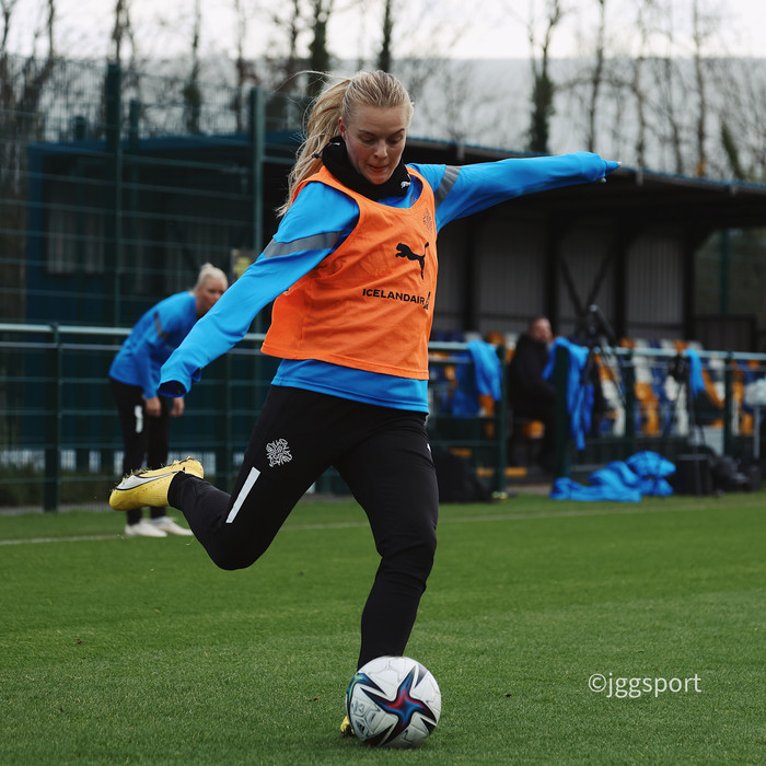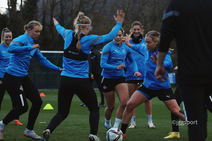 Íslenska landsliðið er mætt til Cardiff í Wales en hér fer fram leikur liðsins við welska liðið í Þjóðadeild kvenna á föstudagskvöldið. Leikurinn er mjög mikilvægur en stig tryggir íslenska liðinu sæti í umspili um að halda sér í A-deildinni.