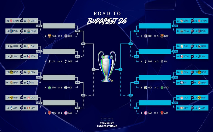 Hvert lið á möguleika á tveimur mótherjum. Liðin sem enduðu í 9. og 10. sæti (Real Madrid og Inter) geta semsagt mætt liðunum sem enduðu í 23. og 24. sæti (Bodö/Glimt eða Benfica).