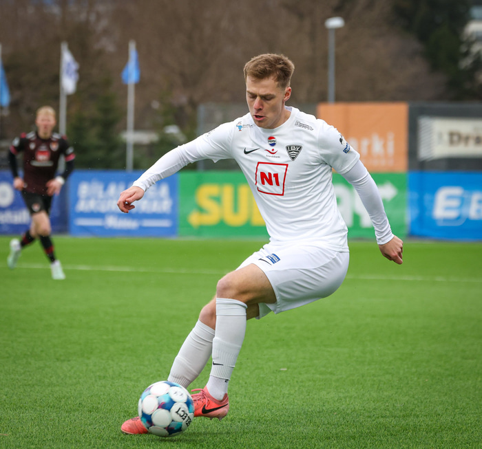 „Arnór (Ingi Kristinsson) tíaði boltann upp fyrir mig og það var lítið annað í stöðunni en að smella honum í fjær. Maður átti nokkur góð í Lengjunni í fyrra og maður þarf að sýna sig líka í Bestu deildinni," sagði Bjarki Björn eftir leik.