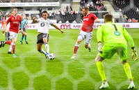 Heimamenn juku sóknarþungan í kjölfarið og tvöfölduðu forystuna rúmum stundarfjórðungi síðar þegar Anders Trondsen skallaði fyrirgjöf frá Bendtner í netið.