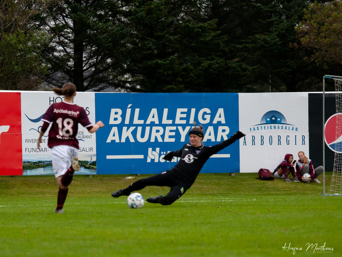 Hún átti nokkrar frábærar vörslur í leiknum og hélt Stólunum á lífi en gat ekki komið í veg fyrir jöfnunarmarkið á 83. mínútu er Telma Hjaltalín Þrastardóttir átti skot af varnarmanni og í netið.