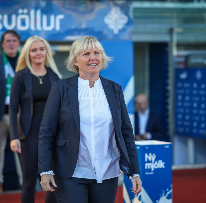 Vanda Sigurgeirsdóttir formaður KSÍ gekk inn á völlinn fyrir  úrslitaleik Mjólkurbikars kvenna í lok ágúst ásamt styrktaraðilum og fulltrúum félganna og heilsaði liðunum. Nú er ljóst að hún gæti aldrei náð því og afhent skjöldinn enda fara báðar athafnir fram á sömu mínútunni.