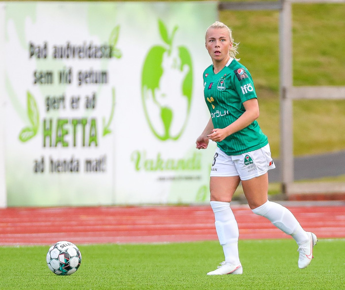 Hún er fædd 2001 og hefur spilað tvo A-landsleiki. Hún hefur alltaf verið í sama mengi og leikmenn sem við höfum talað mikið um. Þetta er búið að vera algjört vonbrigðartímabil fyrir hana, hún er búin að vera lítið með. En þegar hún hefur verið með, þá hefur hún verið ógeðslega góð. Hún á náttúrulega eitt flottasta mark deildarinnar í sumar. Þó að þetta hafi verið strembið sumar fyrir hana, þá er þetta ekki leikmaður sem á að afskrifa. Við völdum hana efnilegasta í fyrra.