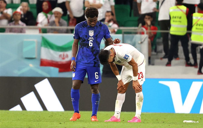 Íran spilaði úrslitaleik við Bandaríkin fyrr í kvöld um hvort liðið færi upp úr B-riðli heimsmeistaramótsins og áfram í 16-liða úrslitin. Bandaríkin, sem er langtíma óvinur Íran þegar kemur að pólitískum málefnum, unnu leikinn gegn Íran og fögnuðu Íranar tapinu.