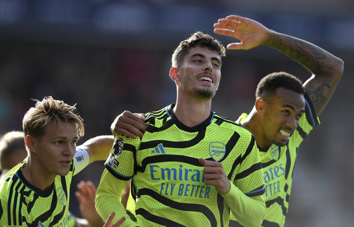 Arsenal: David Raya; Tomiyasu, Saliba, Gabriel, Zinchenko; Odegaard, Rice, Havertz; Saka, Gabriel Jesús, Martinelli.