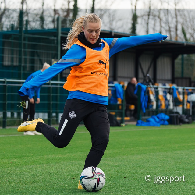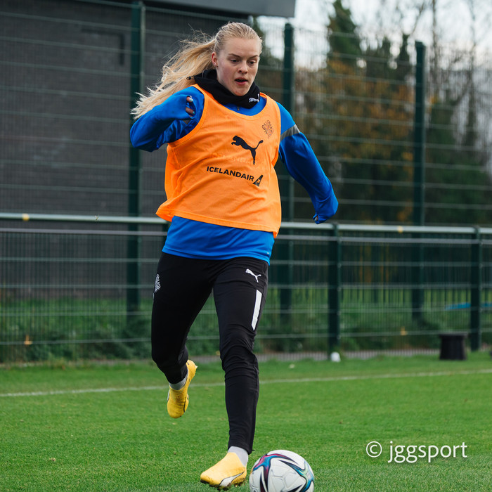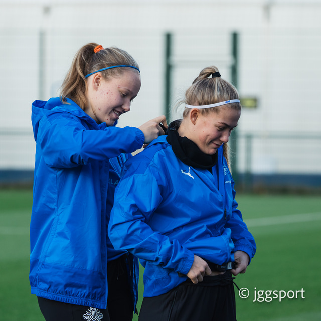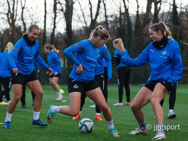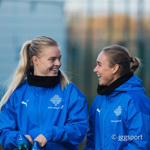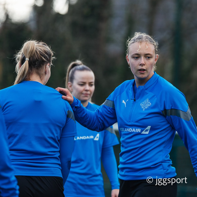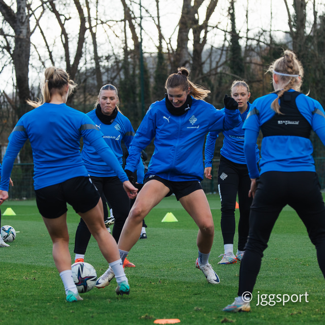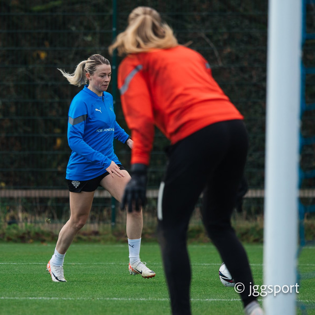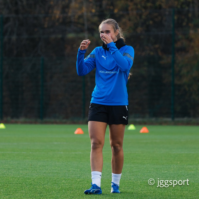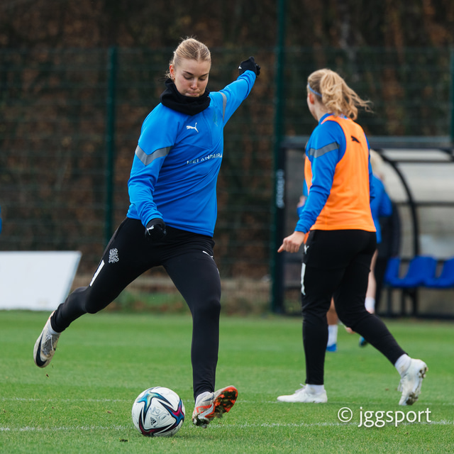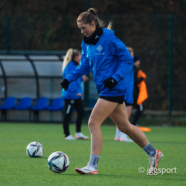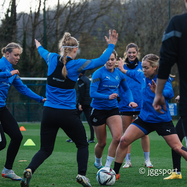 Ísland æfði á æfingavelli í Cardiff í Wales í gær en framundan er leikur við heimakonur í Þjóðadeildinni á föstudagskvöldið. Jónína Guðbjörg Guðbjartsdóttir tók þessar myndir á æfingunni.