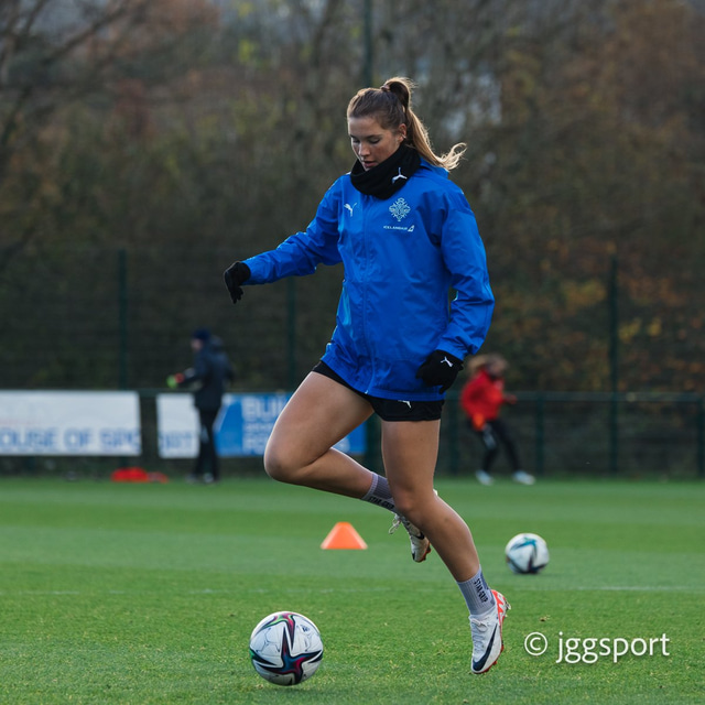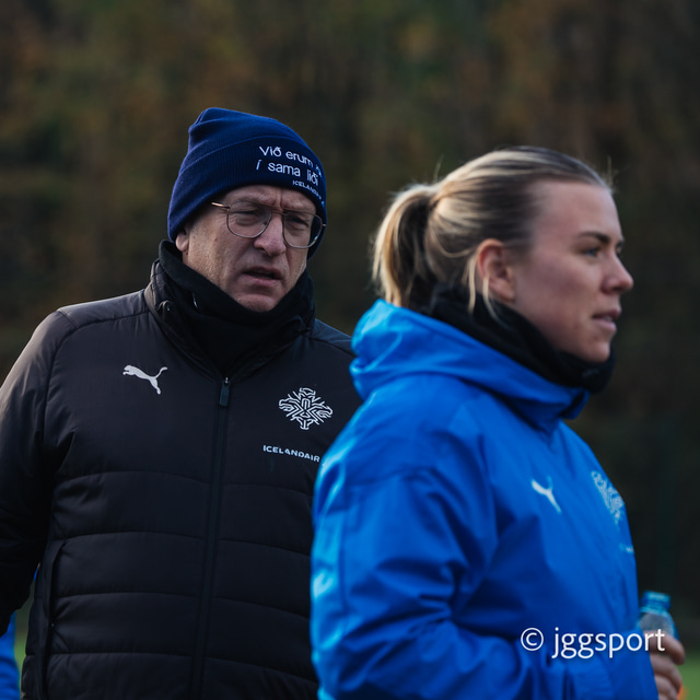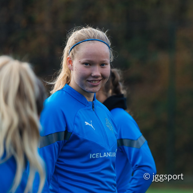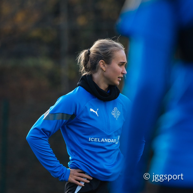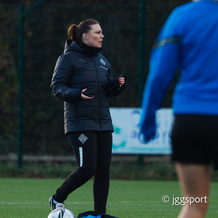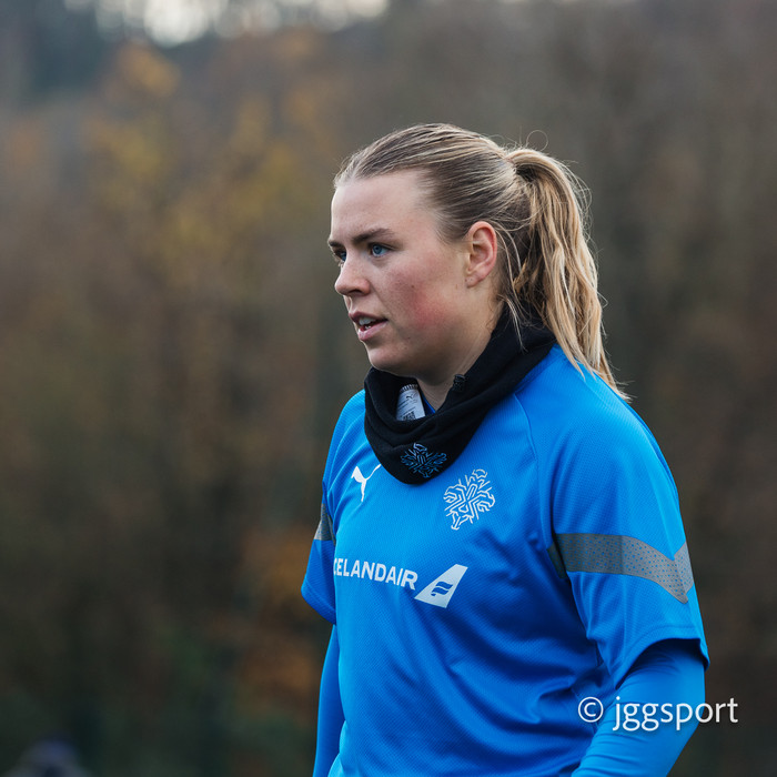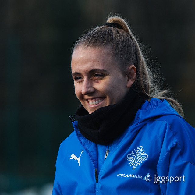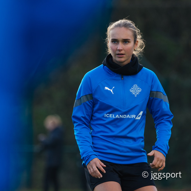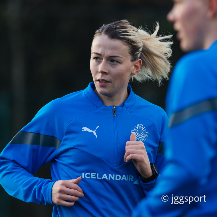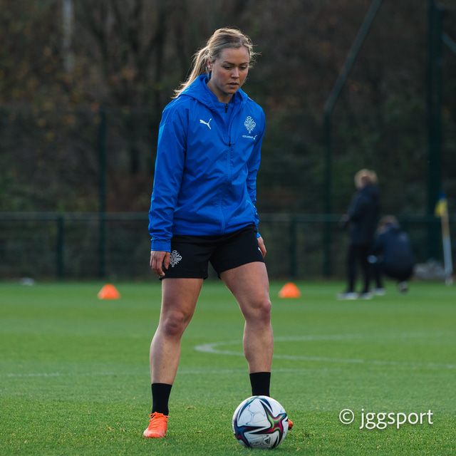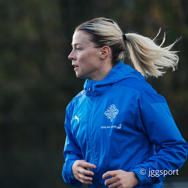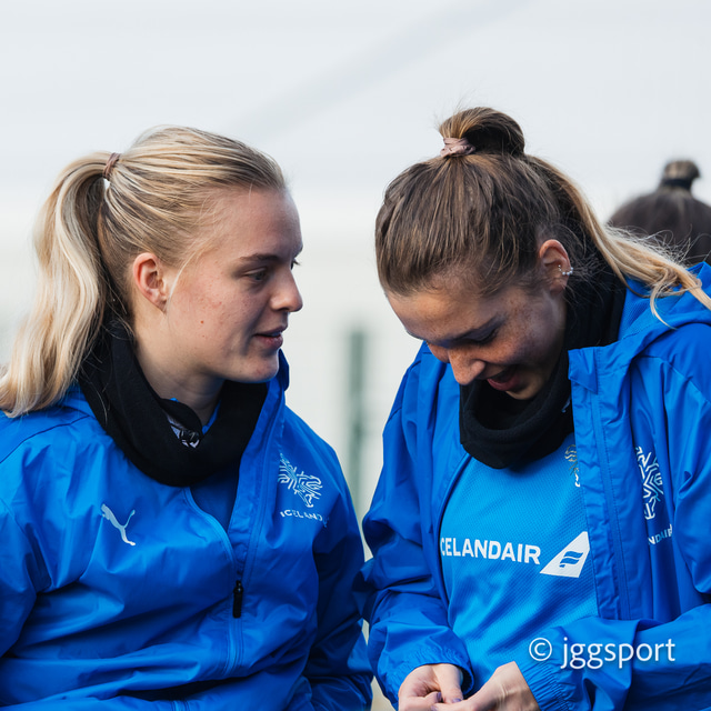 Ísland æfði á æfingavelli í Cardiff í Wales í gær en framundan er leikur við heimakonur í Þjóðadeildinni á föstudagskvöldið. Jónína Guðbjörg Guðbjartsdóttir tók þessar myndir á æfingunni.