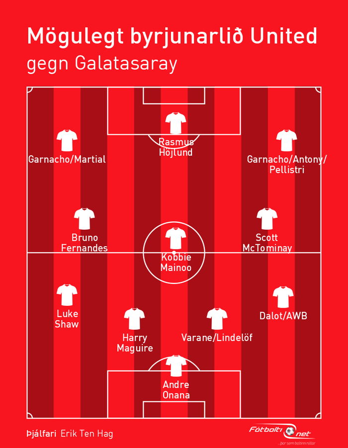Einn þeirra vill fá Facundo Pellistri á hægri kantinn, einn þeirra setur Antony þangað með semingi og sá þriðji færir Alejandro Garnacho út hægra megin og færir Martial í stöðu vinstri kantmanns.