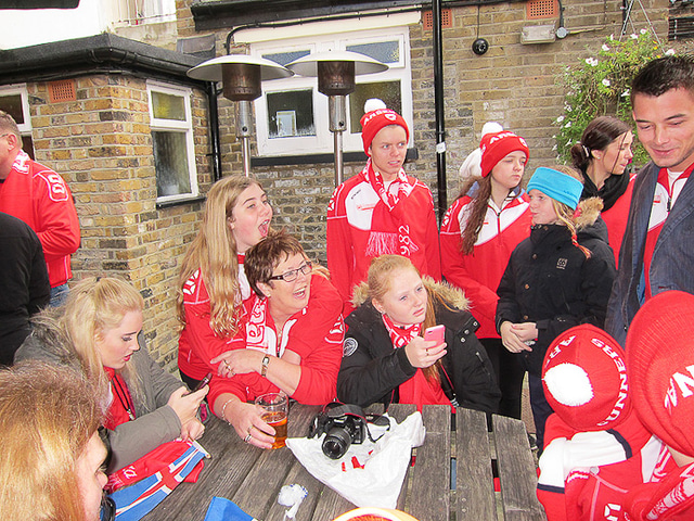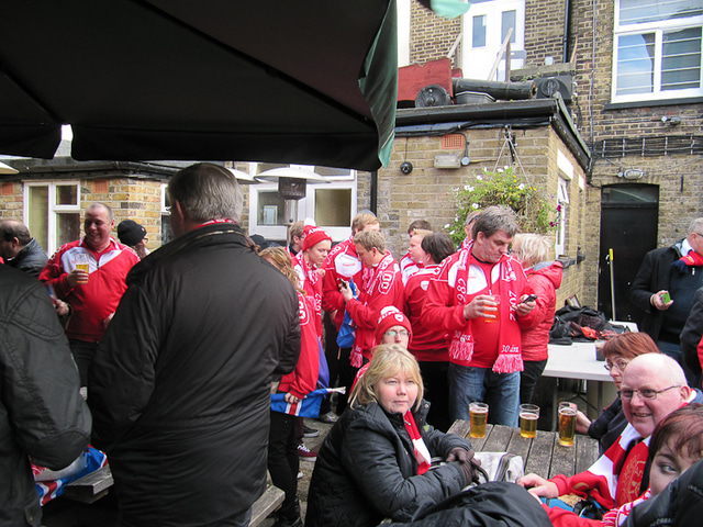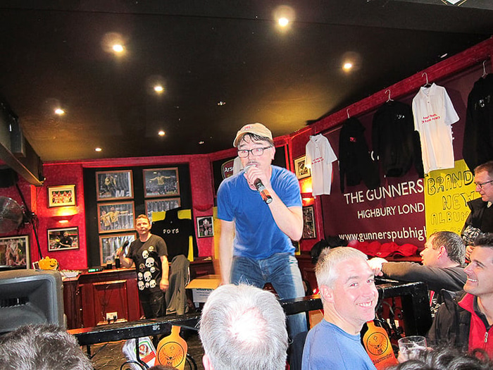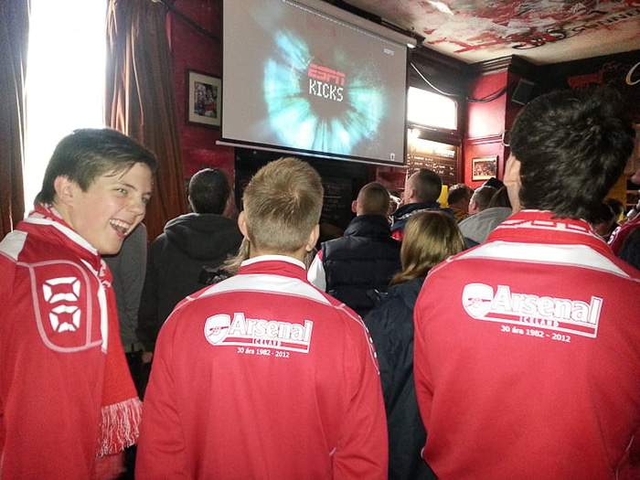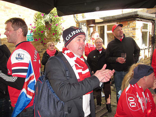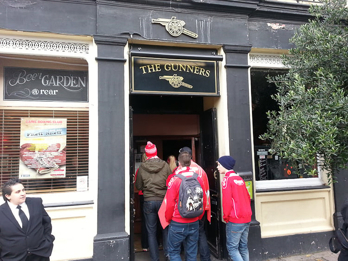 Laugardagurinn var leikdagur og þar bættust í hópinn þeir Íslendingar sem voru á leiknum en komu ekki á fimmtudaginn af ýmsum ástæðum. Farið var með rútum að leikvangnum og þaðan gekk hópurinn í átt að gamla leikvangnum, Highbury sem í dag hýsir íbúðir en heldur samt útliti vallarins. Þaðan var svo farið í gegnum mikla leikdags stemningu að Gunnars Pub þar sem hitað var upp fyrir leikinn.