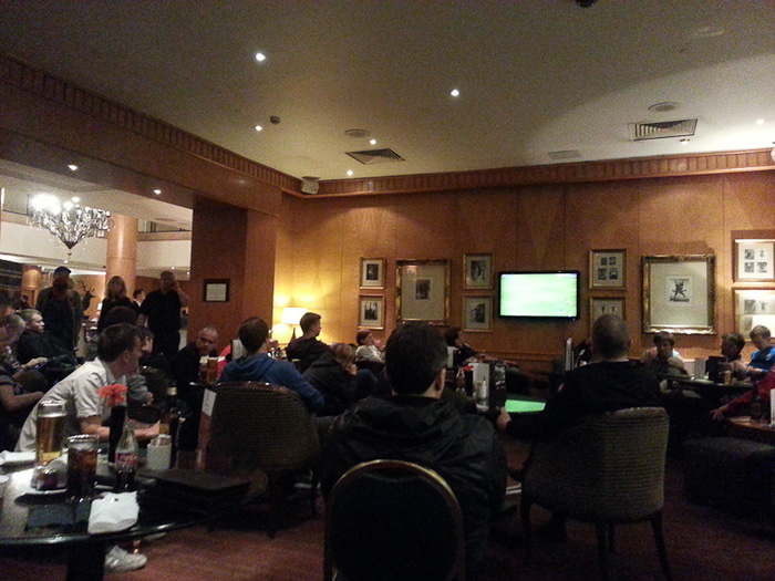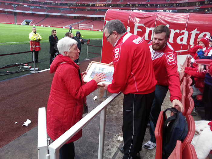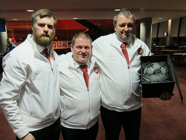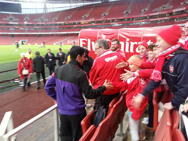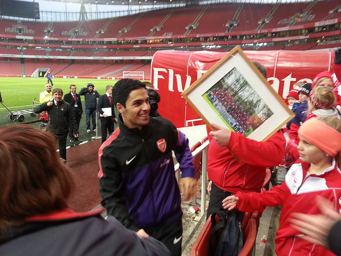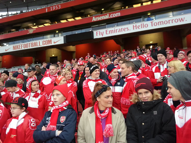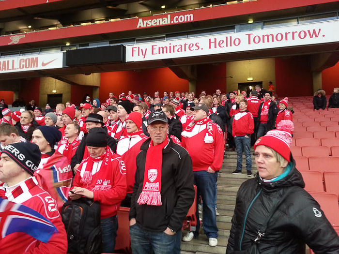 234 Íslendingar fylltu þá stóran sal á leikvangnum þar sem boðið var upp á dýrindismat. Í sjónvarpskerfinu í salnum var nokkrum sinnum spiluð kveðja frá Mikel Arteta fyrirliða liðsins til Íslendinganna þar sem hann þakkaði þeim fyrir komuna.