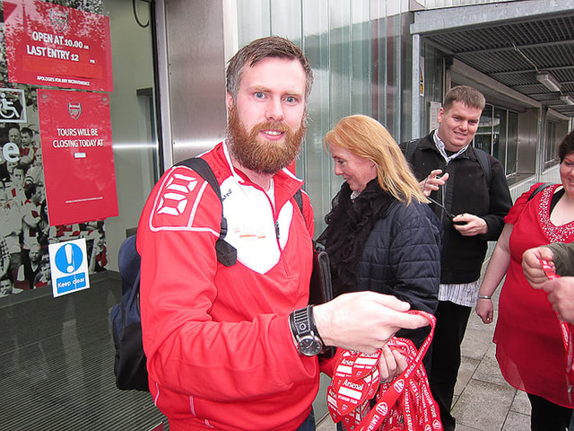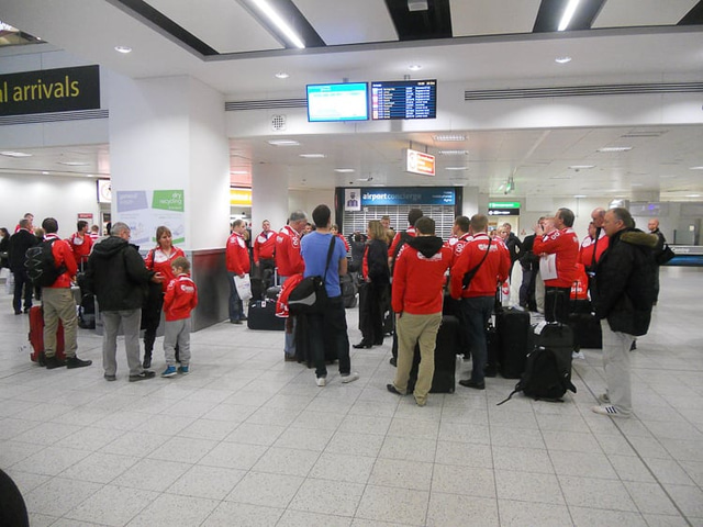 Þegar ég mætti inn í Leifsstöð þennan morgun var sama hvert ég leit, ég sá Arsenal merkið um allan flugvöllinn. Klúbburinn hafði látið útbúa rauðan jakka með merki klúbbsins sem allir ferðalangarnir mættu í. Hópurinn var svo stór að skipta varð honum upp í tvær flugvélar, eina frá Icelandair og eina frá WOW air en 40 manns voru þegar farnir utan og sáu Meistaradeildarleik liðsins gegn Schalke kvöldið áður.