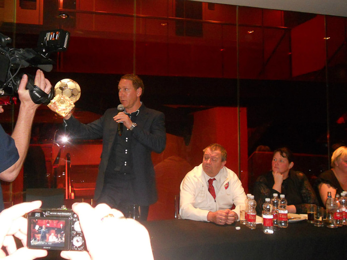 Yfir eftirréttinum hélt Ray Parlour svo tölu yfir mannskapnum og svaraði spurningum allra sem vildu spyrja að einhverju og mynduðust fjörugar umræður um Arsenal í dag og í gamla daga. Parlour sagði skemmtilega frá svo úr þessu var hin mesta skemmtun.