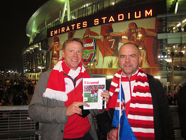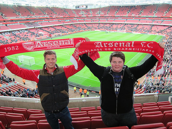 Flugið til London gekk vel og um leið og hópurinn fékk þau fyrirmæli að þar sem mikil dagskrá væri framundan yrði allt að ganga hratt fyrir sig. Fyrir utan flugstöðina á Gatwick biðu okkur rútur sem fluttu okkur á hótelið. Þar tékkuðum við okkur inn og fórum beint upp í rútu aftur sem flutti okkur á Emirates leikvanginn, heimavöll Arsenal, þar sem deginum skyldi verja.