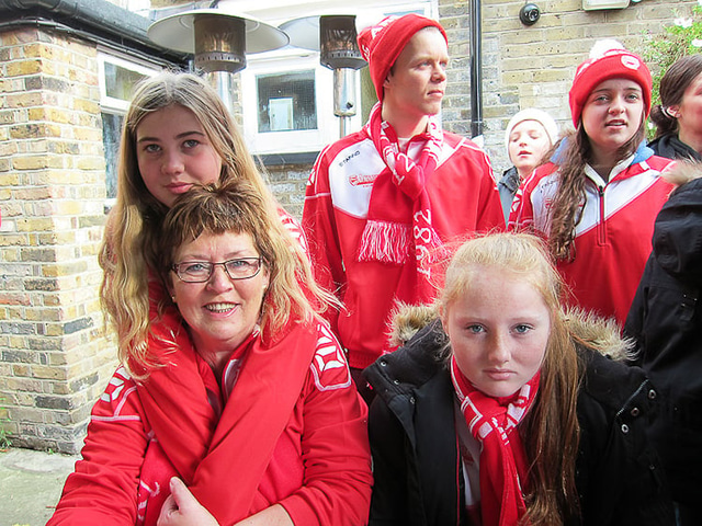 Soffía Ólafsdóttir úr Garðinum 65 ára gömul amma með sinn hóp 26 manns, börn tengdabörn og barnabörn, mögnuð Arsenalfjölskylda.