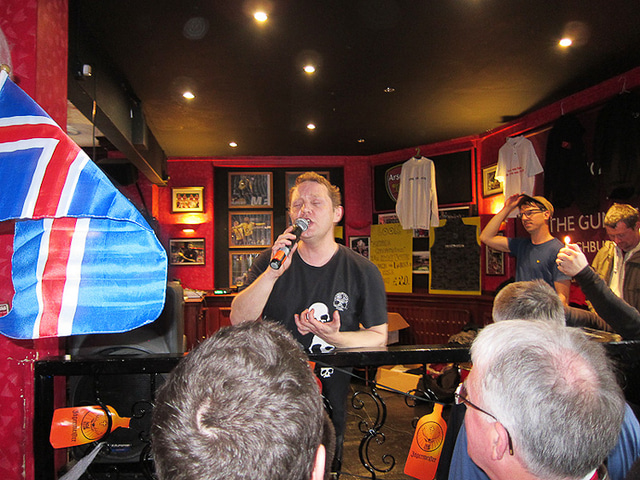Á meðan þessu öllu stóð var kvennalandslið Íslands að spila úrslitaleik um sæti á Evrópumóti landsliða heima á Íslandi og greinilegt var að margir fylgdust með því sem var að gerast þar. Í lok leiksins var það svo Ray Parlour sem kom í kallkerfið og tilklynnti viðstöddum að Ísland væri komið á EM eftir sigur á Laugardalsvelli, við mikinn fögnuð vistaddra.