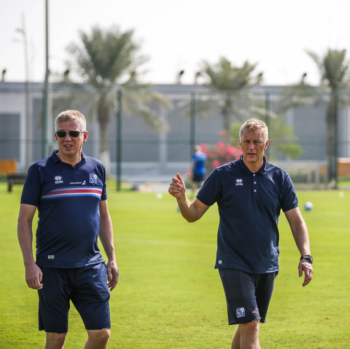 Víðir Reynisson yfirlögregluþjónn hefur fengið verðskuldað lof fyrir framgöngu sína nú þegar kórónaveirufaraldurinn geysar. Víðir hefur undanfarin ár starfað fyrir KSÍ en hann og Heimir Hallgrímsson, fyrrum landsliðsþjálfari, eru góðir vinir.