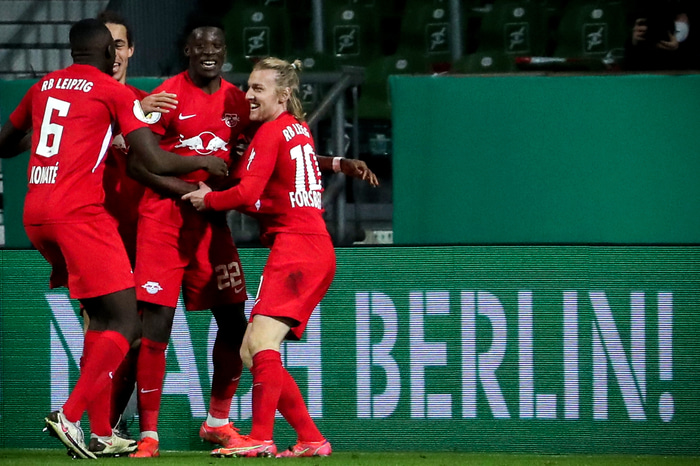 Leipzig mætir annað hvort Dortmun eða Holstein Kiel í úrslitaleik en þau mætast á morgun í hinu einvíginu í undanúrslitunum. Úrslitaleikurinn fer fram 13. maí.