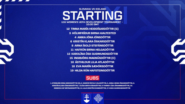 U16 landsliðs kvenna vann 3-0 sigur gegn Slóvakíu í fyrsta leik sínum á sérstöku þrónarmóti UEFA í Eistlandi, UEFA Development Tournament.