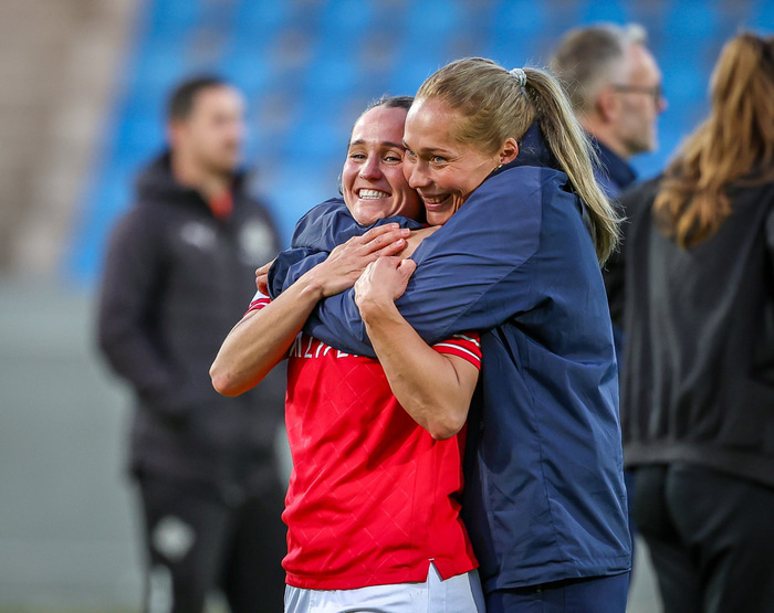 „Þetta er bara fínt, við erum ekkert að pæla í hvar liðið er við erum bara að horfa fram á veginn og halda áfram. Við erum því bara þokkalega sáttar," sagði Fanndís jafnframt.