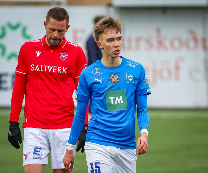 Helgi Fróði er hins vegar með baneitraðar aukaspyrnur og setur hann úr einni. Duffield-genin sögðu til sín, Bjarni braut af sér fyrir utan teig og fékk gult. Duffield-feðgar eru í léttum Gretzky-bræðrafýling varðandi metið yfir gul spjöld.