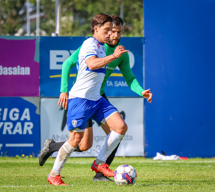 Sex mínútum síðar tvöfaldaði Sigurður Karl Gunnarsson forystuna með skalla eftir hornspyrnu frá Breka Hólm Baldurssyni.
