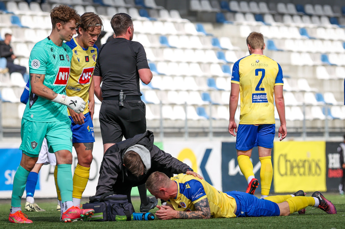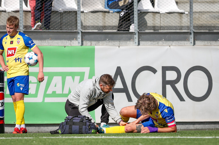 Mikið var um stopp í leiknum og til að mynda tólf mínútum bætt við fyrri hálfleikinn. Sjúkraþjálfararnir voru í yfirvinnu.