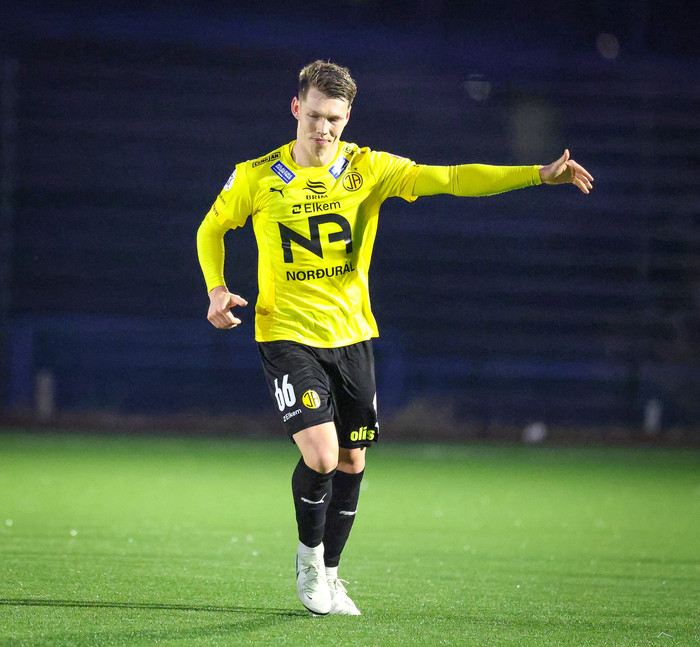 Jón Gísli átti frábært tímabil með ÍA í fyrra og orðaður við atvinnumennsku erlendis. Í gær var hann valinn maður leiksins. Hann er hægri vængbakvörður og var með áætlunarferðir upp og niður kantinn í leiknum.