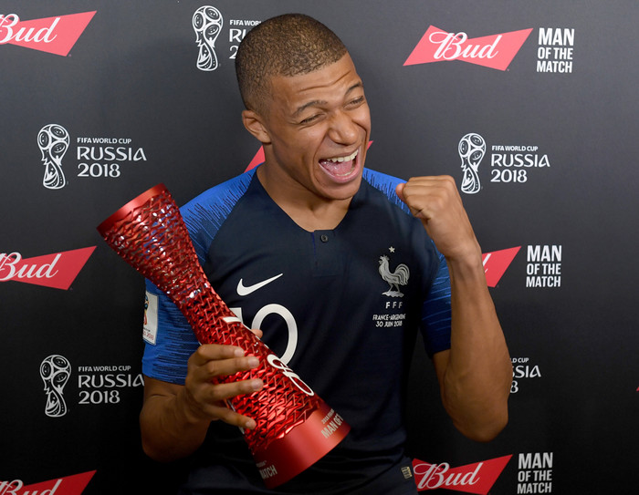 Kylian Mbappe var allt í öllu og skoraði tvö mörk og nældi í vítaspyrnu snemma leiks, Mbappe var kjörinn maður leiksins í annað skiptið á mótinu.