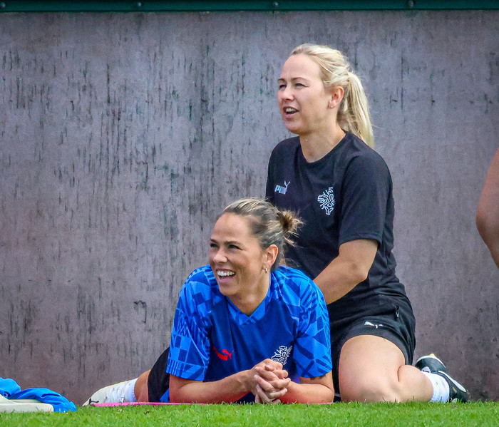 Þetta eru bara nokkur dæmi en hér fyrir neðan má sjá listann yfir allt starfsfólk KSÍ á EM. Þarna eru til dæmis nokkrar fyrrum landsliðskonur.