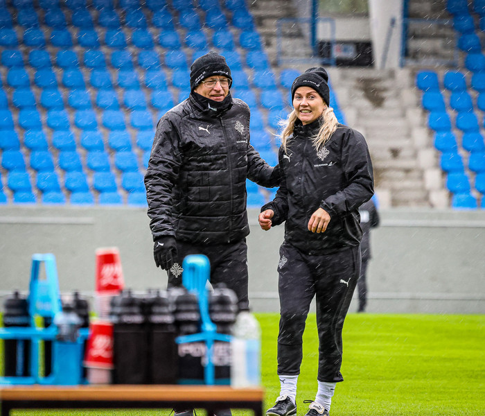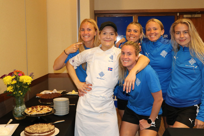 Svo er það kokkurinn, Ylfa Helgadóttir, sem hefur eldað ofan í kvennalandsliðið í nokkur ár. Ylfa, sem nýverið menntaði sig sem lögfræðingur, hefur ferðast með kvennalandsliðinu í flesta keppnisleiki síðustu árin.