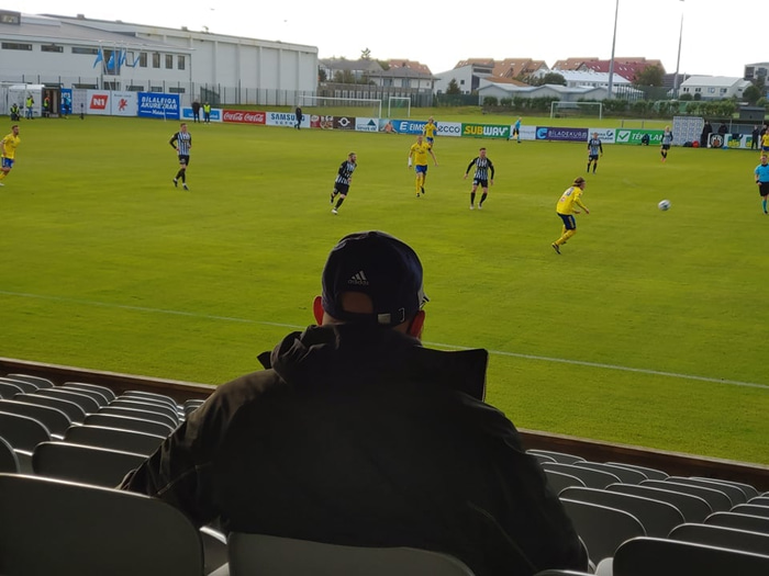 Elvar Geir Magnússon er á Meistaravöllum fyrir hönd Fótbolta.net og hann tók meðfylgjandi myndir. Ansi tómlegt er um að litast en einn einstaklingur situr í stúkunni. Það er Halldór Breiðfjörð, eftirlitismaður KSÍ.