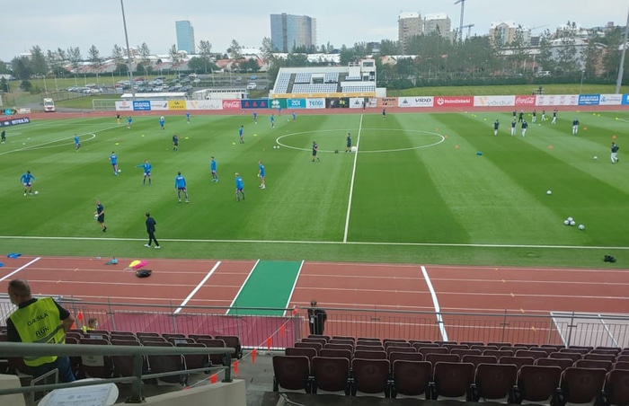 „Við erum að reyna sækja um undanþágu, við erum komnir á það stig í keppninni að Laugardalsvöllur er eini völlurinn sem uppfyllir þau skilyrði sem þarf til. Kópavogsvöllur er category 2 völlur og Laugardalsvöllur er category 3," sagði Eysteinn.