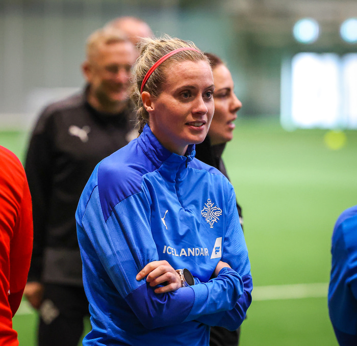 „Það er alltaf gaman að koma hingað í þennan hóp," segir Berglind Björg Þorvaldsdóttir, sóknarmaður íslenska landsliðsins, í samtali við Fótbolta.net.