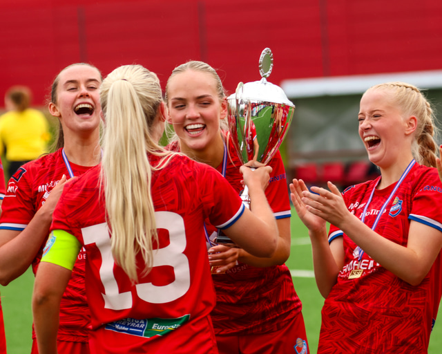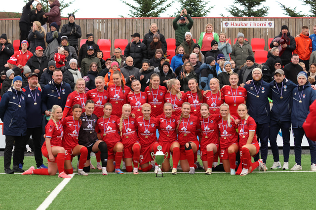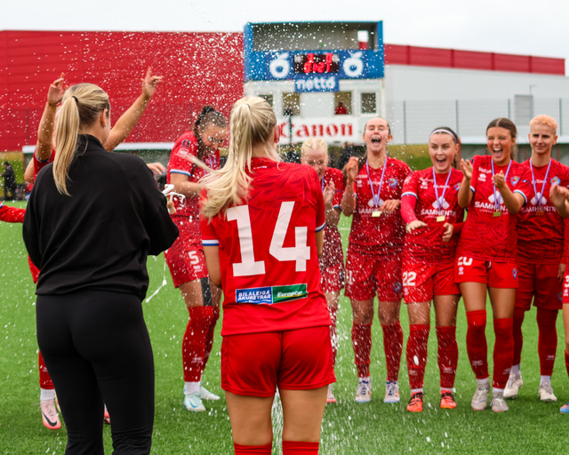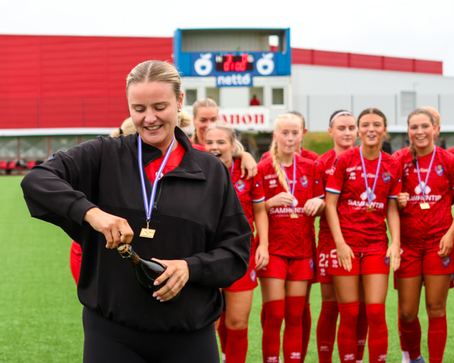 Haukar fögnuðu um helgina sigri í 2. deild kvenna eftir að hafa unnið 3 - 0 heimasigur á Völsungi í lokaumferðinni. Haukur Gunnarsson var á Ásvöllum og tók þessar myndir.