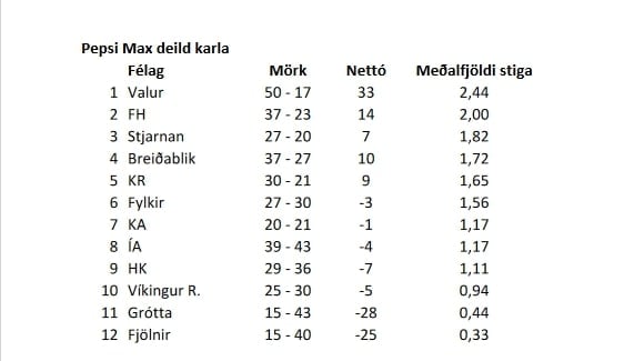 Nú fyrir skemmstu tilkynnti KSÍ að keppni í Íslandsmótinu væri hætt. Samkvæmt 5. greinar reglugerðar KSÍ kemur fram að ef mótinu er ekki lokið skal meðalfjöldi stiga ráða til um lokaniðurstöðu liðanna í deildinni.